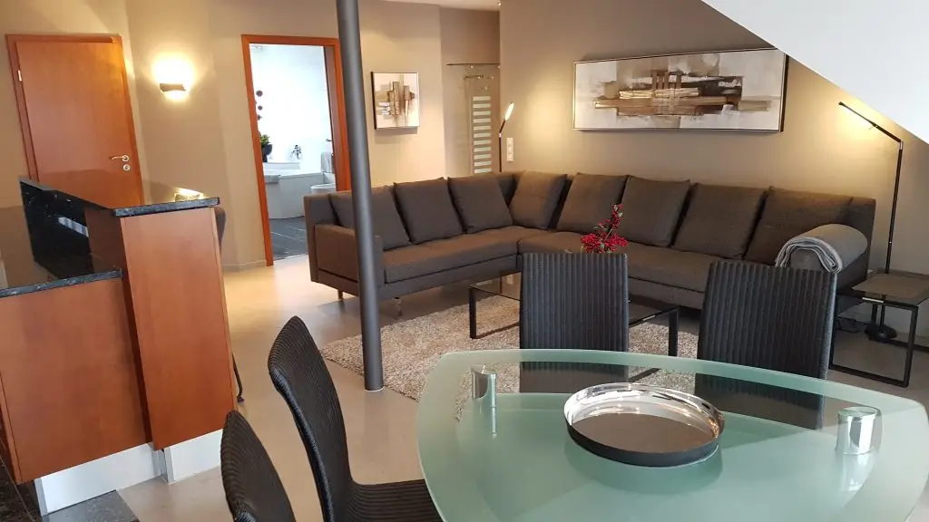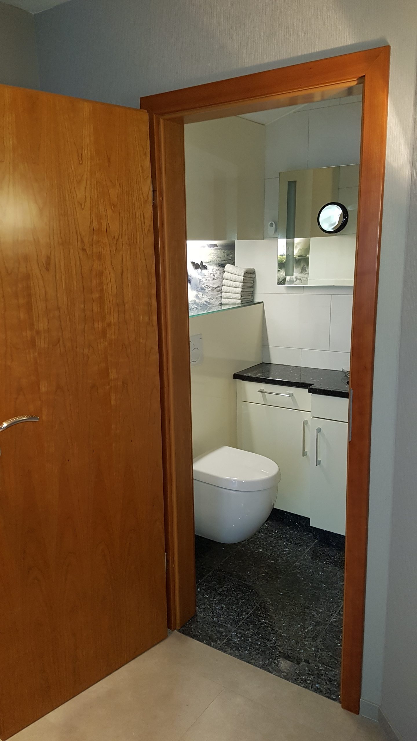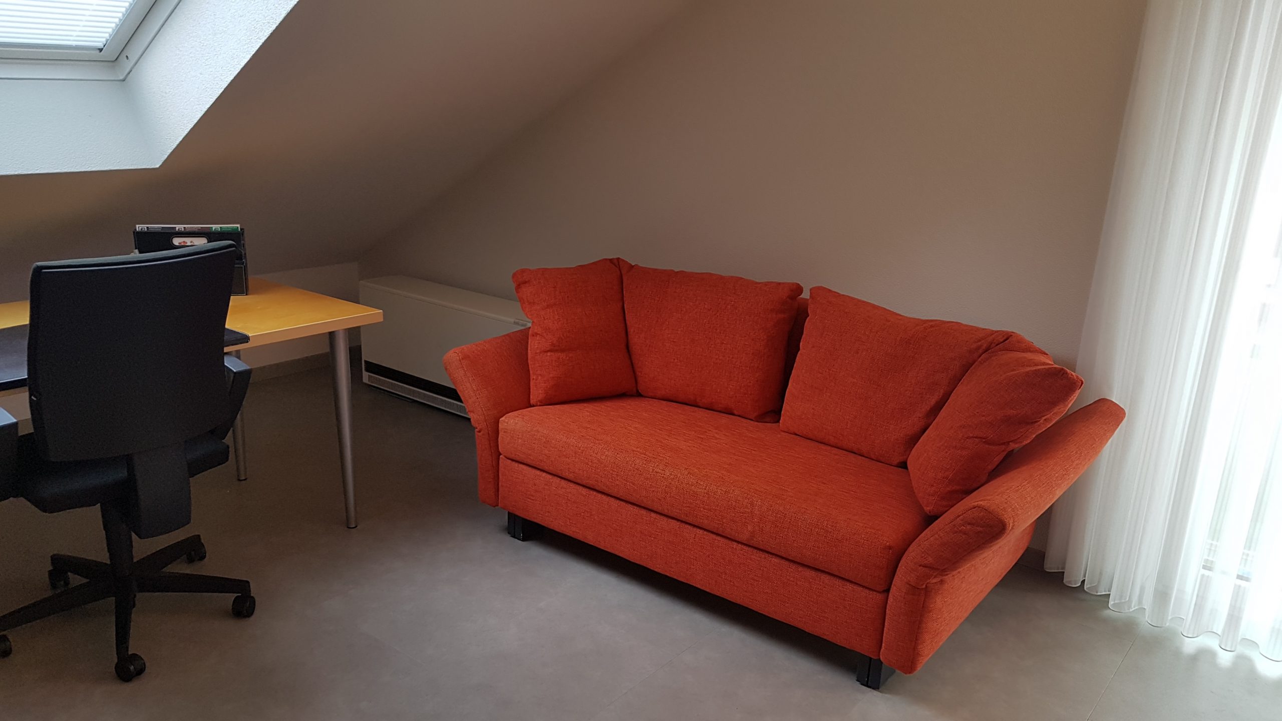 Es erwartet Sie ein großzügiges Raumkonzept trotz Dachschräge. Ebenso wurde auf eine optimale Wärmedämmung größten Wert gelegt, so dass in den Sommer- und Wintermonaten ein angenehmes Raumklima herrscht. Die Ferienwohnung ist mit hochwertigen Möbeln ausgestattet und verfügt über ein geräumiges Badezimmer mit Wanne und Dusche sowie eine separate Gästetoilette. Ein großes Schlafzimmer mit Doppelbett 180 cm breit sowie ein 2. Schlafzimmer mit Singlebett 90cm breit und einer Schlafcouch gehören ebenso zur Ausstattung. Der offene Wohn- Essbereich mit integrierter Küche lädt zum verweilen und genießen ein. Der große Balkon mit Blick in die Rheinebene verfügt über eine Markise und bequeme Sessel. Ideal fürs Frühstück im Freien oder lauschige Abende.