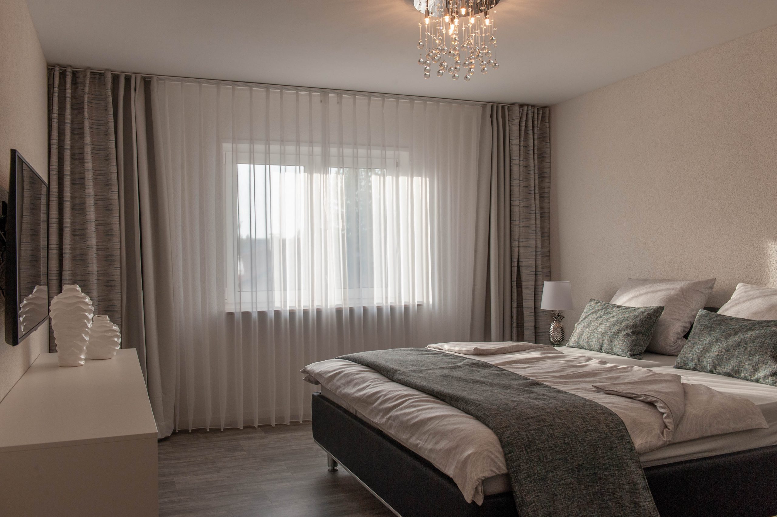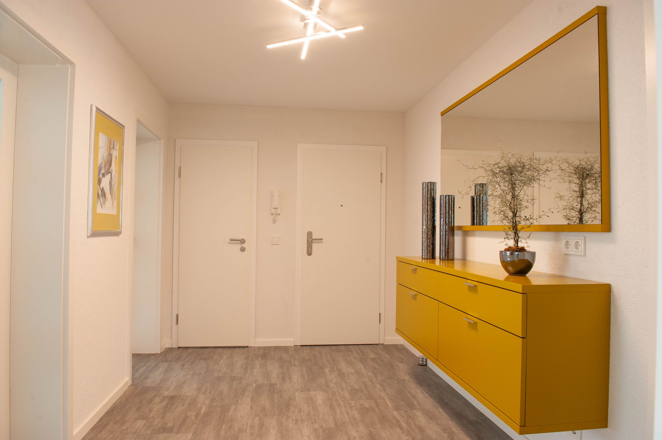 Die Wohnung besticht durch Ihre Großzügigkeit und schlichte Eleganz. Hochwertige Möbel überzeugen in Form und Funktion. Der große Wohn- Essbereich umfasst 40 qm und wird durch die funktionale Küche mit Ihrem Bartresen ergänzt. Ebenfalls zur Ausstattung gehört ein großer Balkon mit Markise, Tisch mit Stühlen der 6Personen Platz bietet. Die Ferienwohnung verfügt über ein geräumigen Badezimmer mit Walk in Dusche und großer Badewanne sowie WC und Bidet und separater Gästetoilette. Das Schlafzimmer ist mit einem Boxspringbett in der Größe 180 cm Breite ausgestattet. Ein Smart TV ist selbstverständlich. Das 2. Schlafzimmer wird als Ankleidezimmer genutzt und verfügt über ein Singlebett 90cm breit. Kinderbett und Hochstuhl auf Anfrage.