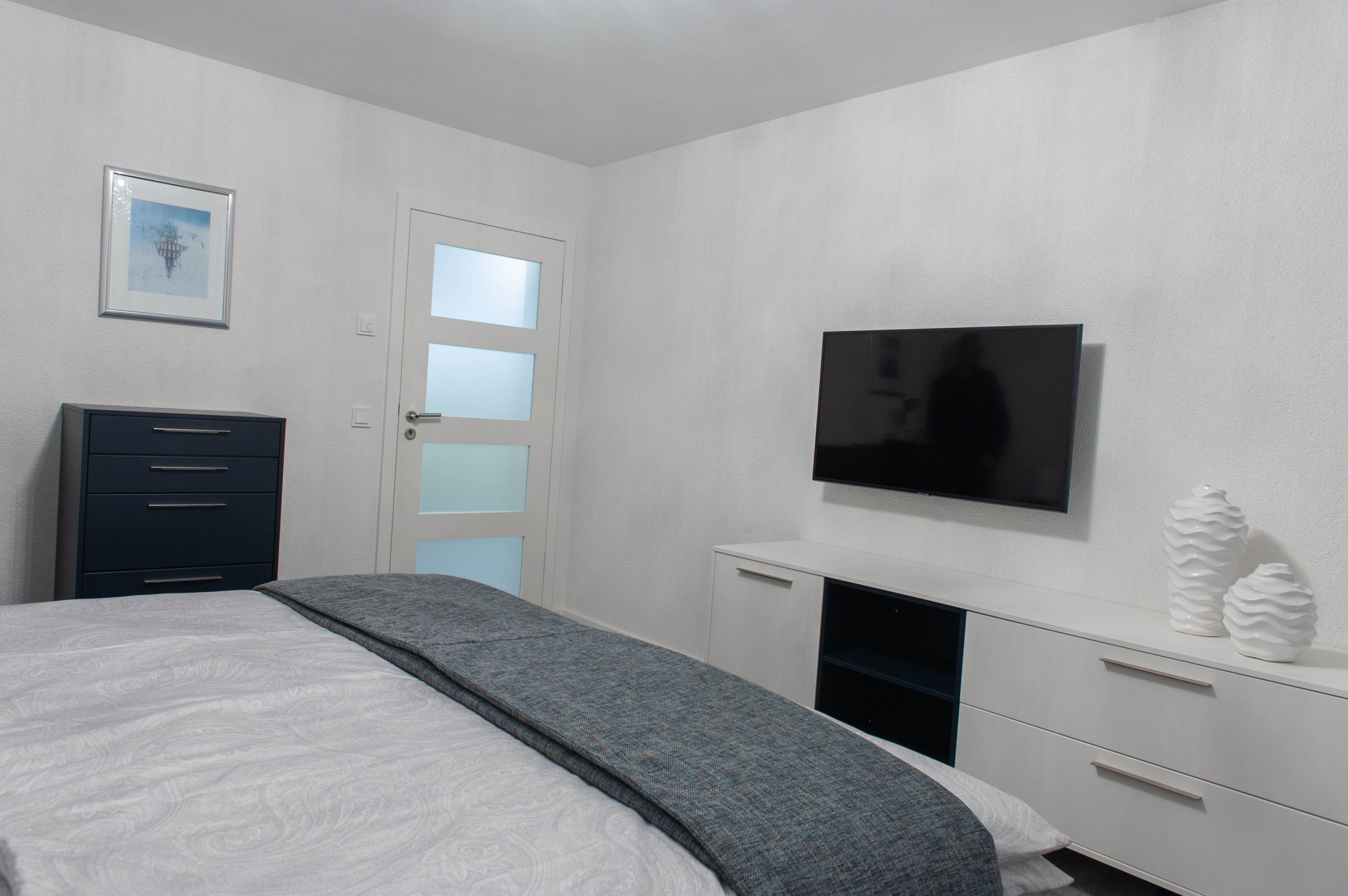 Alle unsere Wohnungen sind mit einem oder zwei Smart TVs und kostenfreiem Internet ausgestattet. So genießen Sie auch im Urlaub Ihre Lieblingssendungen jederzeit bequem und ohne Unterbrechung.