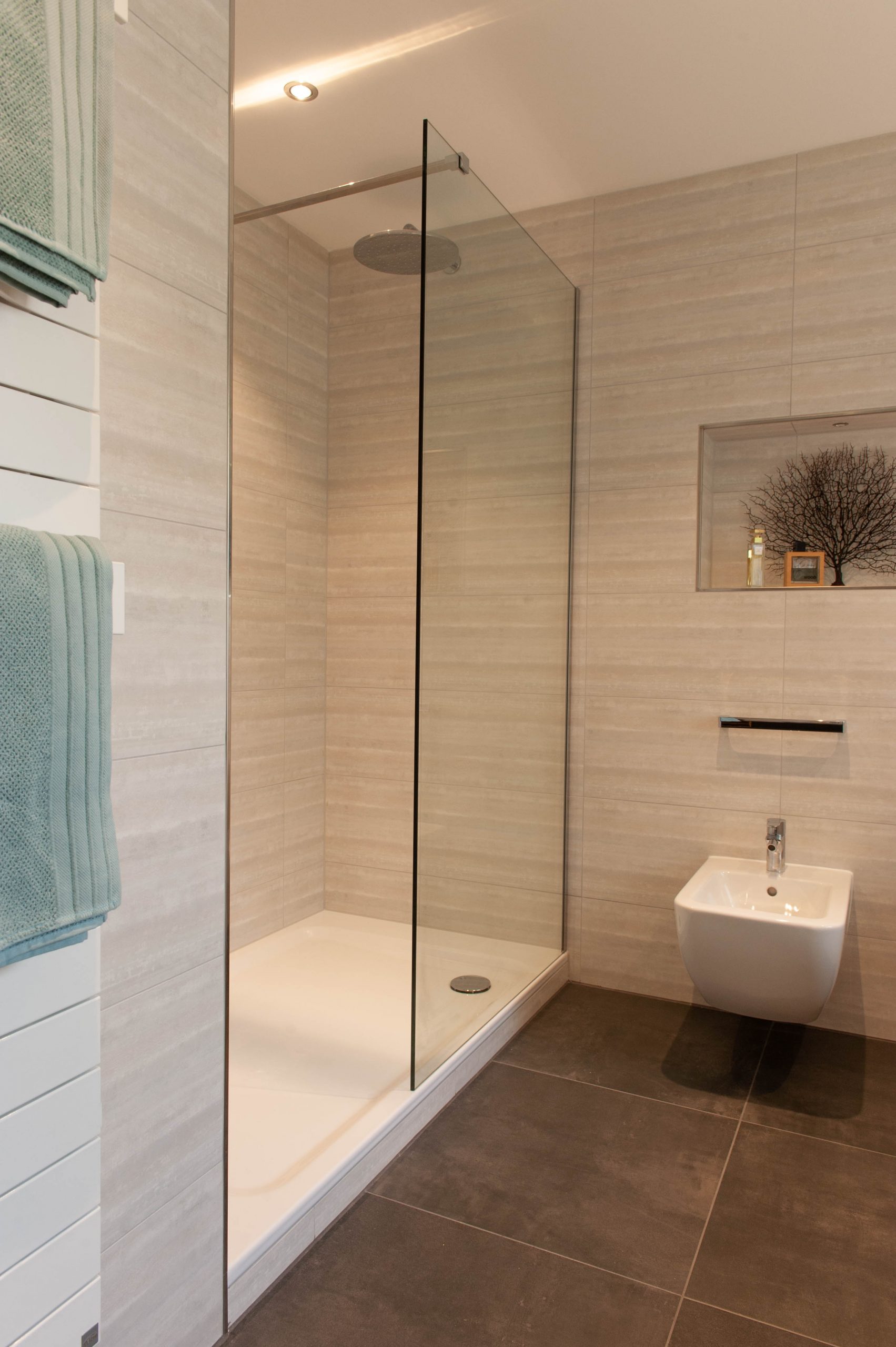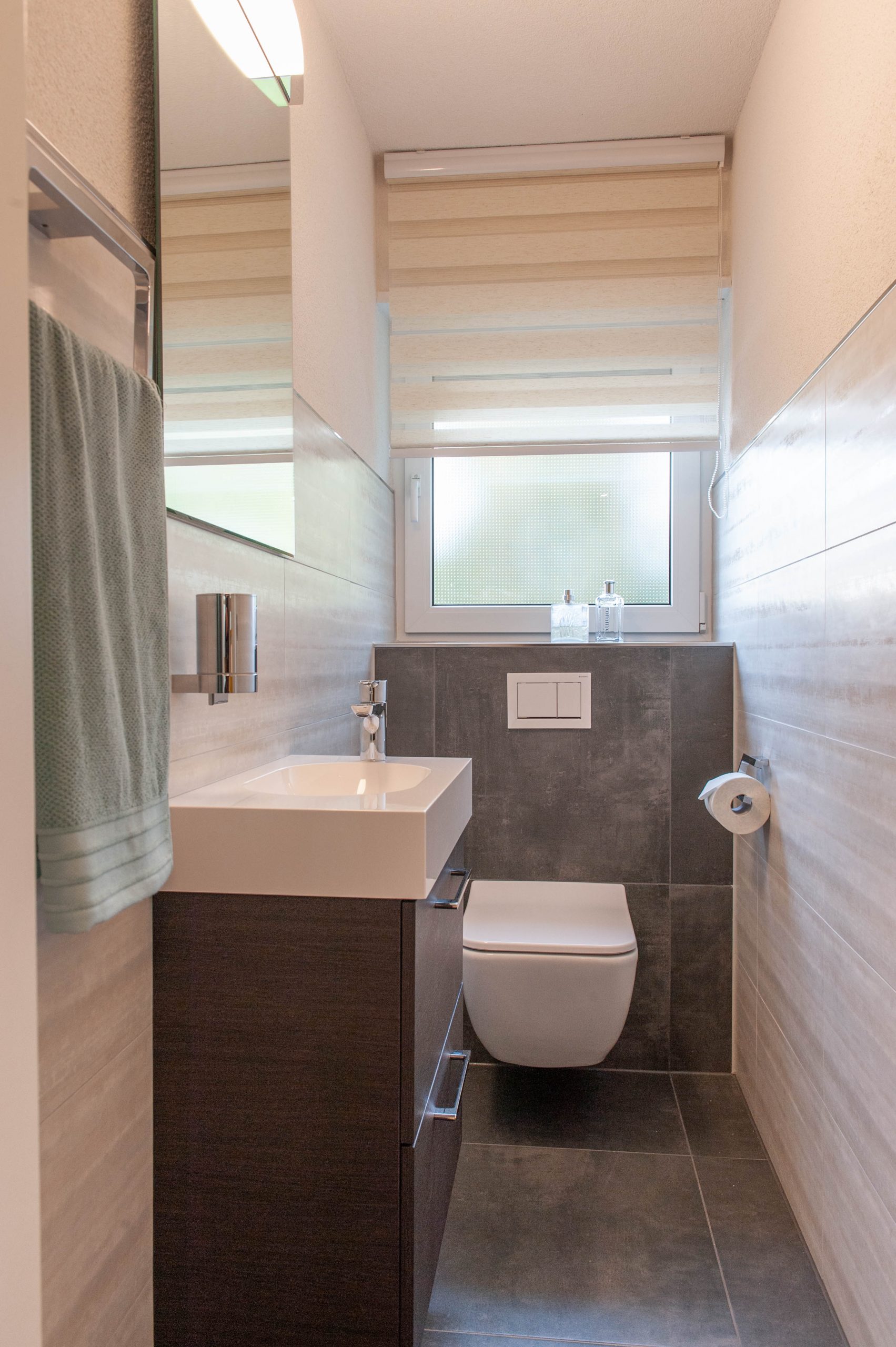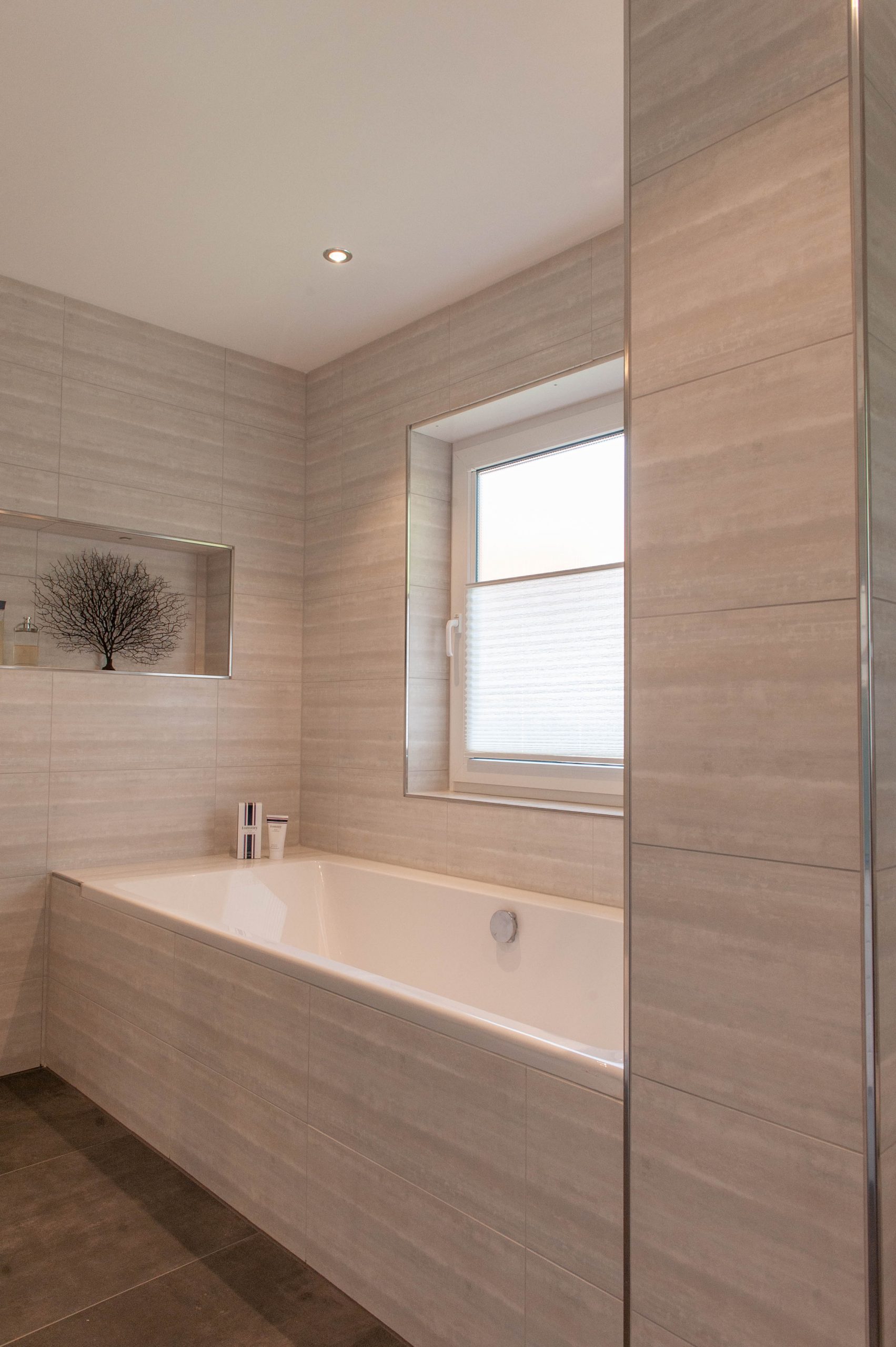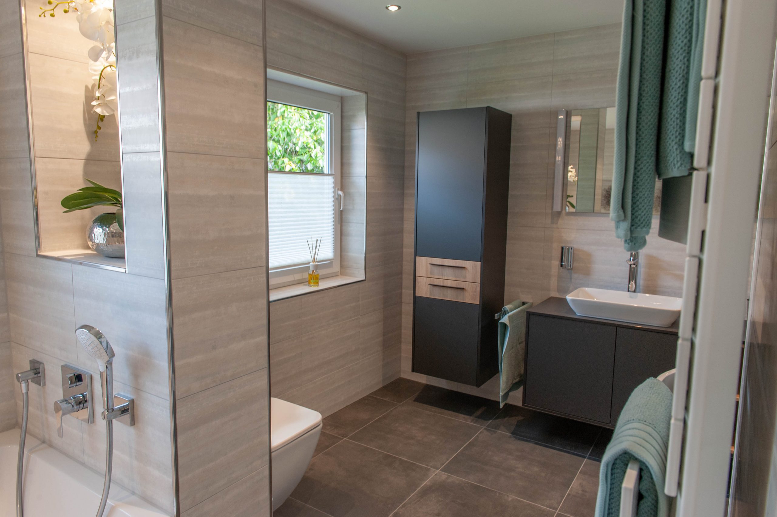 Das großzügige Badezimmer bietet eine Badewanne, Walk-in-Dusche, WC und Bidet für höchsten Komfort. Die große Waschtischanlage mit deckenhohen Spiegeln sorgt für viel Platz und eine moderne Atmosphäre.