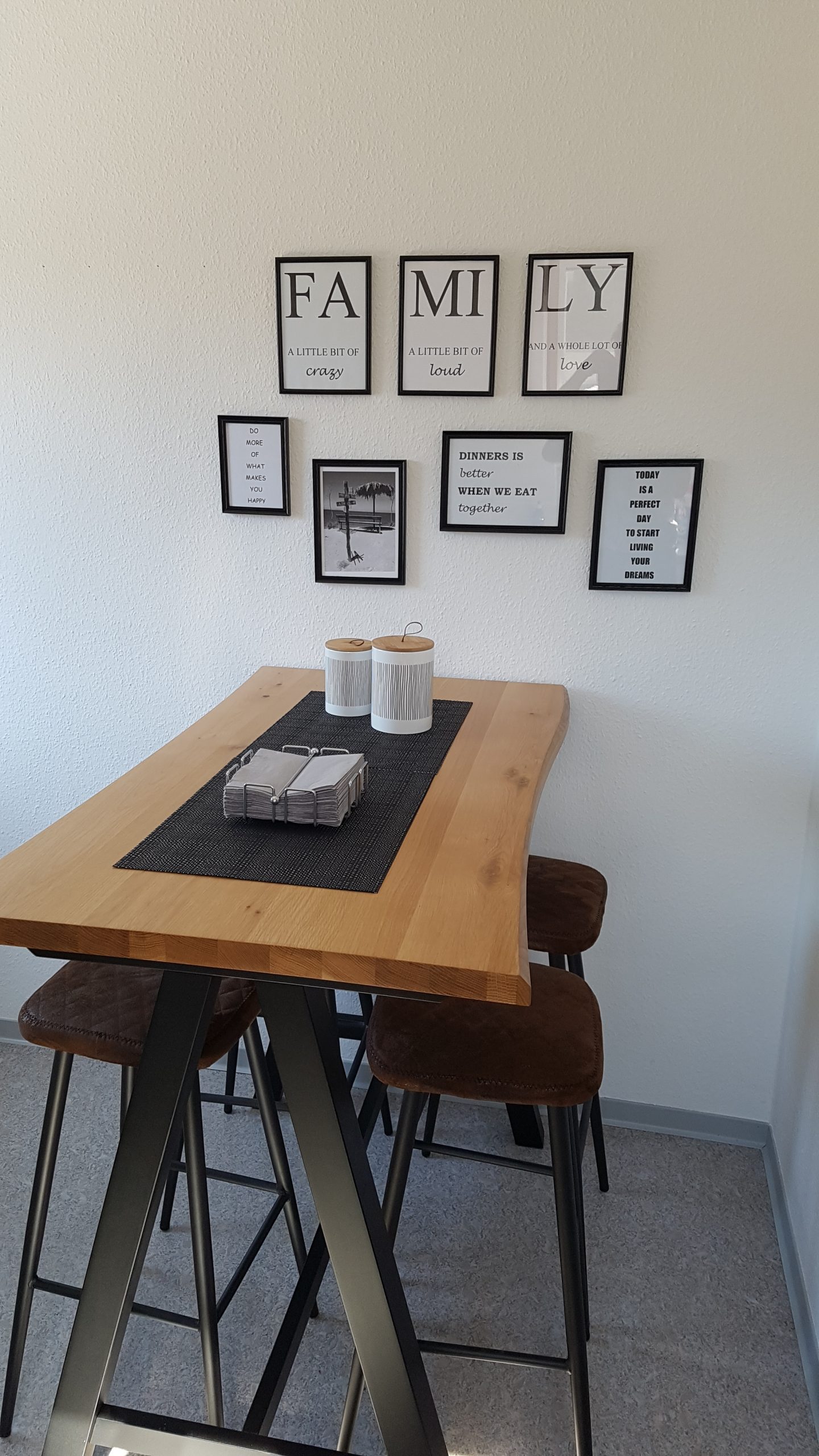 Sie speisen an einem großzügigen Esstisch mit Platz für 6 Personen. Die hochwertigen Freischwinger sorgen für hohen Sitzkomfort und laden zu entspannten Mahlzeiten ein.