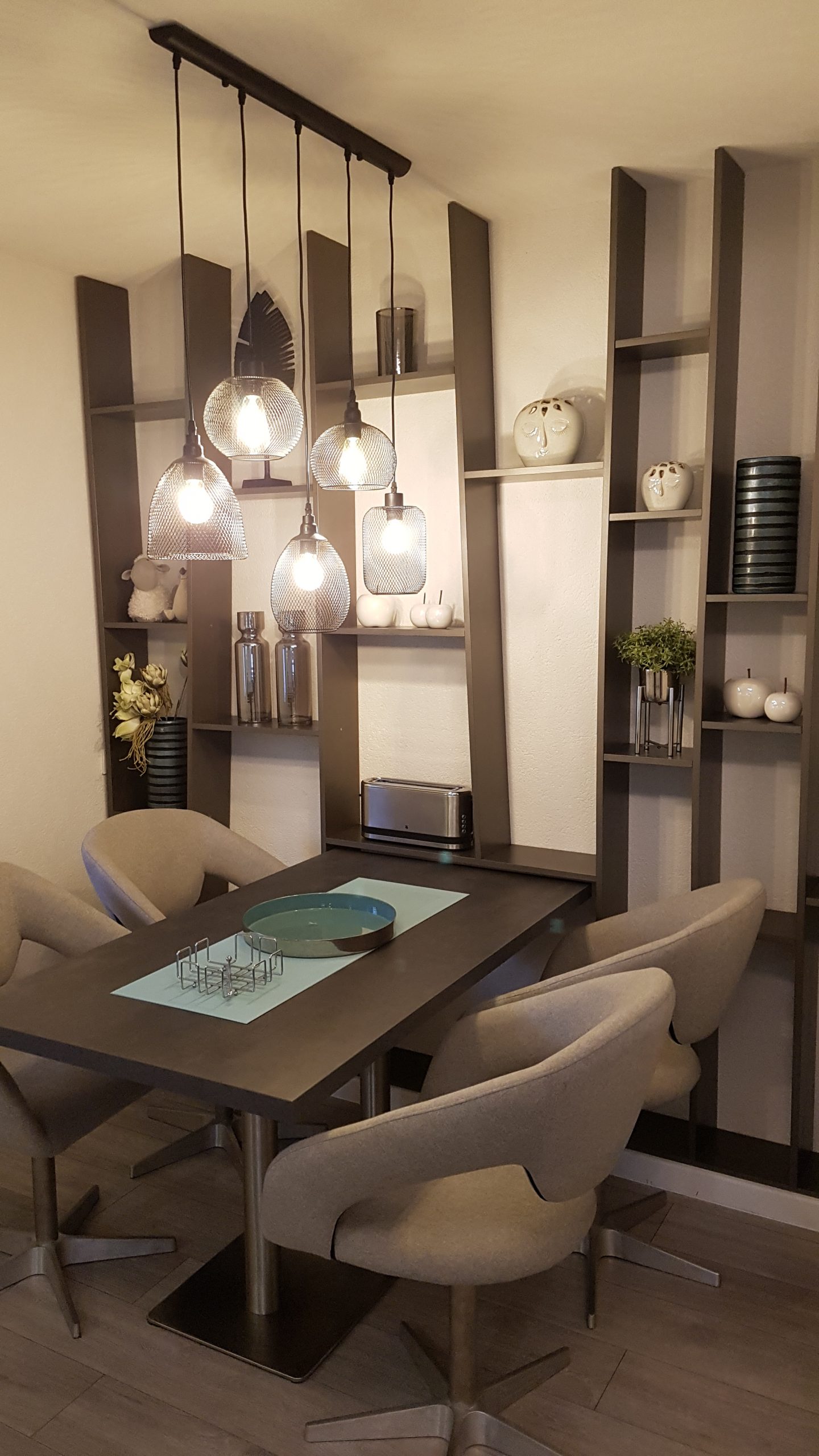 Sie speisen an einem großzügigen Esstisch mit Platz für 6 Personen. Die hochwertigen Freischwinger sorgen für hohen Sitzkomfort und laden zu entspannten Mahlzeiten ein.