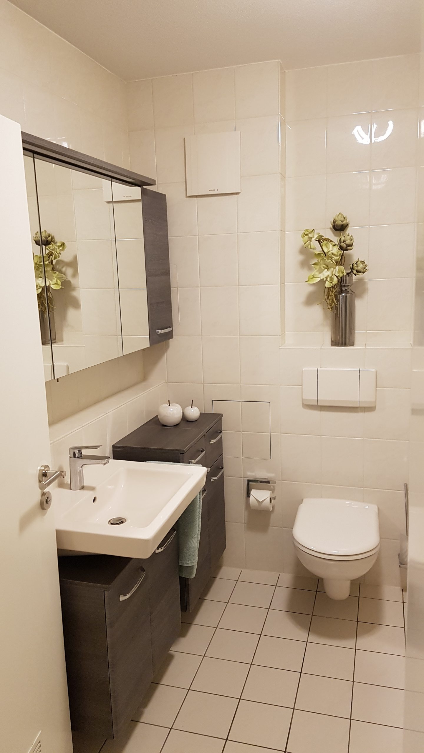 Das großzügige Badezimmer bietet eine Badewanne, Walk-in-Dusche, WC und Bidet für höchsten Komfort. Die große Waschtischanlage mit deckenhohen Spiegeln sorgt für viel Platz und eine moderne Atmosphäre.